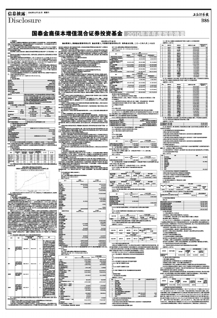 国泰金鹿保本增值混合证券投资基金2010年半年度报告摘要