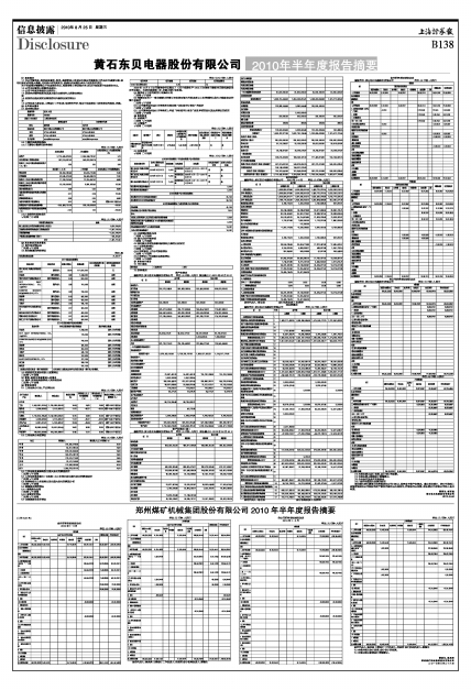 黄石东贝电器股份有限公司2010年半年度报告摘要