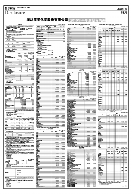 潍坊亚星化学股份有限公司2010年半年度报告摘要