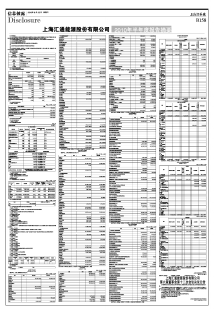 上海汇通能源股份有限公司2010年半年度报告摘要