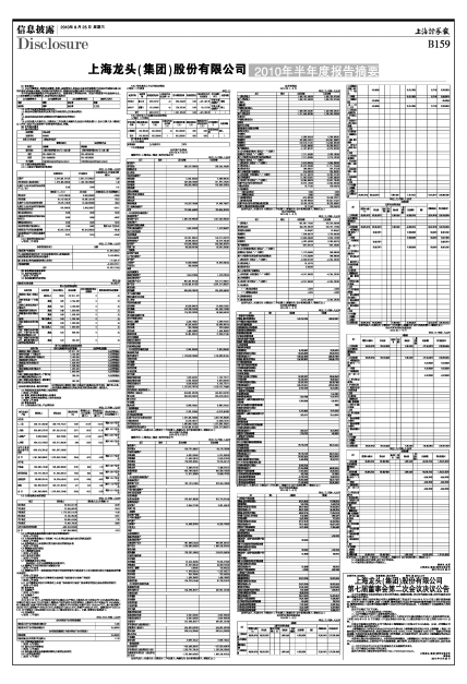 上海龙头(集团)股份有限公司2010年半年度报告摘要