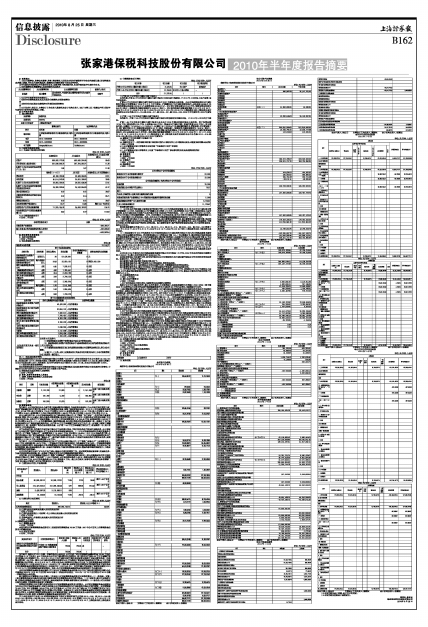 张家港保税科技股份有限公司2010年半年度报告摘要