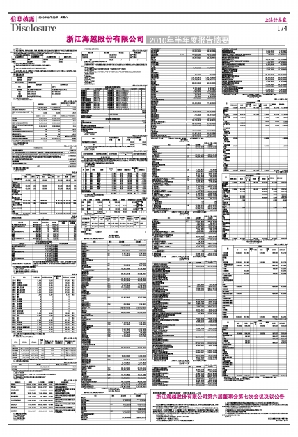 1、《浙江海越股份有限公司2010年半年度报告及其摘要》;