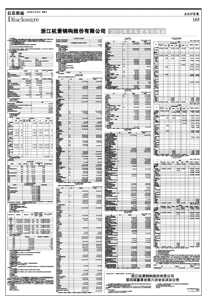 浙江杭萧钢构股份有限公司2010年半年度报告摘要