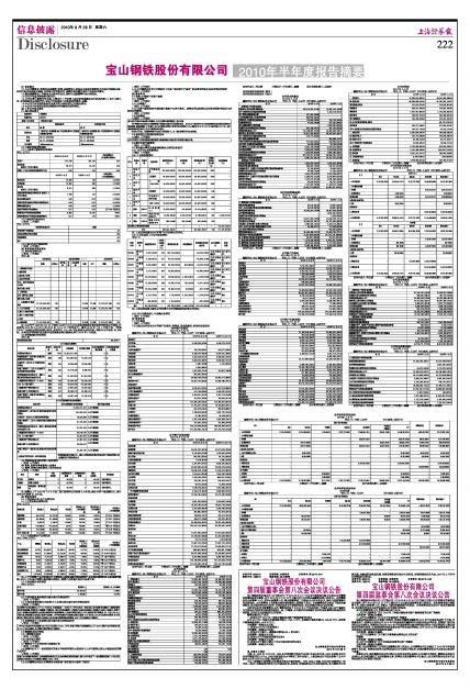 宝山钢铁股份有限公司2010年半年度报告摘要
