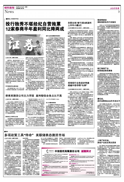 投行独秀不堪经纪自营拖累 12家券商半年盈利同比降两成