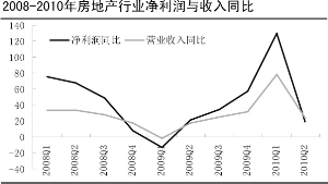 由于房地产行业采用预售房屋的销售方式,因此房地产公司的当期销售收入和当期营业收入并不完全一致,我们认为房地产公司的预收账款的增加额和营业收入的合计值能在一定程度上反映公司当期的经营收入情况。我们考察申万房地产行业已经公布半年报的上市公司的预收账款增加额与营业收入合计值的变化情况,经历2008年底的低谷后, 近几个季度的合计值保持在较高水平。2010年二季度来看,合计值从一季度的864亿元降至464亿元,这说明2010年房地产行业真实收入情况已经开始显现下滑迹象。