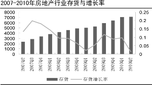 从存货绝对量来看,截至2010年中,地产行业存货余额同比增长1.3%。较高的存货(主要为土地储备和在建工程)可以为房地产公司长期发展提供一定的保障。但是也面临价格下跌带来的风险。未来市场销量一旦下滑,房地产企业将面临一定的去库存的压力。