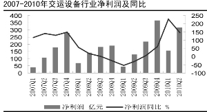 应收账款周转率和存货周转率稳步上升,分别从第一季度的6.28和11.70上升到7.18和14.37。这两项指标的变化,充分说明了公司的管理上成效显著,原因主要是自今年上半年来,需求回暖,由于供求状况的改善,这使得应收账款周转和存货的周转不断加快。从整个行业来看,交运设备行业上市公司的营运能力较去年同期有所增强。
