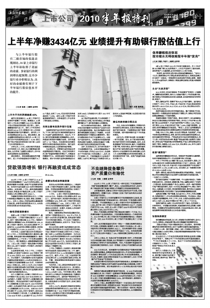 上半年净赚3434亿元 业绩提升有助银行股估值上行
