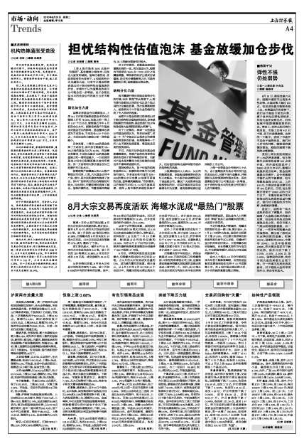 担忧结构性估值泡沫 基金放缓加仓步伐
