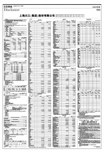 上海大江(集团)股份有限公司2010年半年度报告摘要