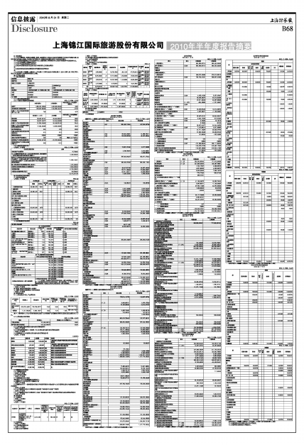 上海锦江国际旅游股份有限公司2010年半年度报告摘要