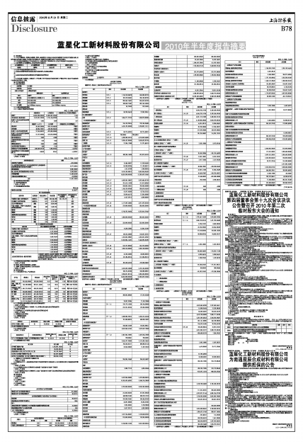 蓝星化工新材料股份有限公司2010年半年度报告摘要