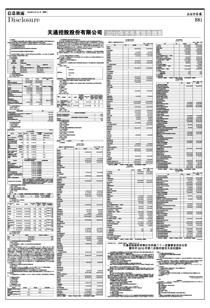 天通控股股份有限公司2010年半年度报告摘要