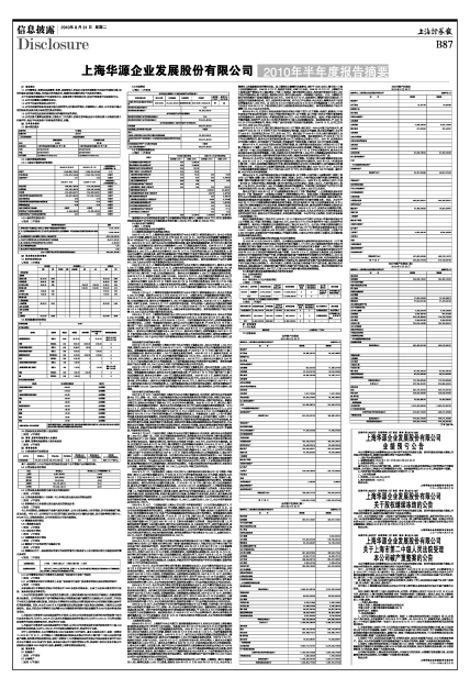 上海华源企业发展股份有限公司2010年半年度报告摘要