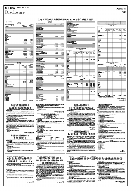 上海华源企业发展股份有限公司2010年半年度报告摘要