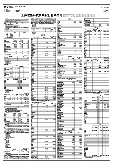 上海宏盛科技发展股份有限公司2010年半年度报告摘要