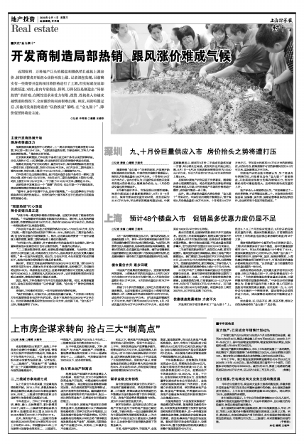 深圳 九、十月份巨量供应入市 房价抬头之势将遭打压