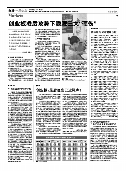 造成创业板股票表现差于中小板股票的原因主要有两个:一是创业板股票的中期业绩表现不佳,其成长性与众多中小板股相比较逊色,加上创业板股本发行价偏高,估值明显高于其他群体,而成长性低于预期使得投资者望而生畏。数据显示,中报披露完毕,共有113家公司实现了营业收入199.75亿元,归属于母公司净利润32.43亿元。106家可比公司实现归属母公司净利润30.49亿元,同比增长24.42%,其中83家公司实现净利润正增长,23家公司净利润同比下降。同期,已经公布中报的434家中小板公司上半年归属母公司净利润同比平均增幅达到43.63%,1093家已发布中报的主板公司上半年归属母公司净利润同比平均增幅为41.07%。无论是与主板还是与相似的中小板相比,创业板的业绩明显逊色很多。正因为此以及高溢价发行,创业板的股票市盈率高企,明显高于中小板股票。