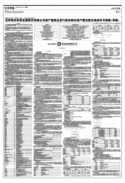 2、吉林领先科技发展股份有限公司拟通过资产置换及向特定对象发行股份购买资产的方式实施重大资产重组,具体方案为:公司拟将截止审计评估基准日其拥有的除未偿付的“股转债”债券余额(具体金额以公司聘请的中介机构出具的以2010年6月30日为审计基准日的审计报告中确定的金额为准)及等额货币现金之外的全部资产与负债(以下简称“置出资产”)与新能国际、平安创投、联中实业、益豪企业、金石投资、福宁投资、中农丰禾、盛世景投资、陈义和共9方(以下简称“中油金鸿全体股东”)持有的中油金鸿合计100%的股份(以下简称“置入资产”)进行资产置换;置入资产交易价格超出置出资产交易价格的差额部分由公司发行股份购买。