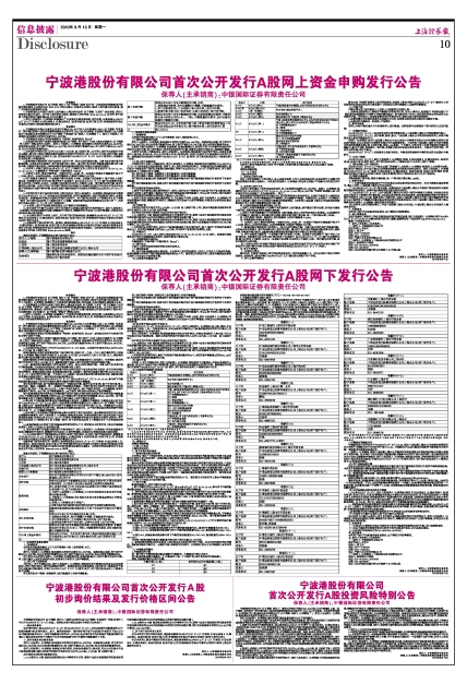 宁波港股份有限公司首次公开发行A股网上资金申购发行公告
