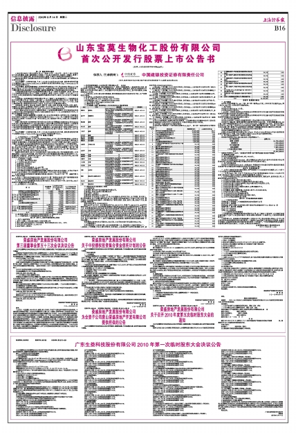 经深圳证券交易所《关于山东宝莫生物化工股份有限公司人民币普通股股票上市的通知》深证上[2010]296号同意,本公司发行的人民币普通股股票在深圳证券交易所上市,股票简称“宝莫股份”,股票代码“002476”,其中本次公开发行中网上定价发行的2,400万股股票将于2010年9月15日起上市交易。