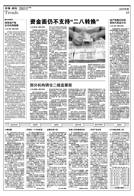 上证50指数: 1914.38点低开后弱势振荡,而后大幅上扬;午后波动中一路走低,翘尾收于1922.14点。微涨6.5点,涨幅为0.34%。至收盘,交易的个股中37只上涨,10只下跌,3只平盘。