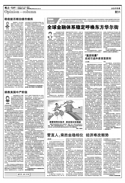 全球对金融监管的争论,只是既有秩序主导者转移货币体系改革视线的一记妙招。笔者曾在本栏中多次说过,对既得利益者来说,放弃国际货币体系的既有地位肯定非常痛苦,而建立中国主张的公平、公正、包容、有序的国际金融新秩序,需要经过有关参与各方的多回合持续博弈。而一旦华尔街和伦敦金融城再度成为全球金融符号和力量主宰中心,中国要想赢得金融主导权,难度无疑要大得多。在足以平衡美国影响的东方华尔街出现之前,世界不要指望由雷曼兄弟破产引爆的全球金融体系洗牌取得根本性突破。
