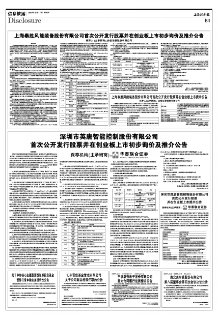 深圳市英唐智能控制股份有限公司根据《证券发行与承销管理办法》、《关于进一步改革和完善新股发行体制的指导意见》以及《首次公开发行股票并在创业板上市管理暂行办法》首次公开发行股票(A股)并拟在创业板上市,本次初步询价和网下发行均采用深圳证券交易所(以下简称“深交所”)网下发行电子平台进行,请询价对象及其管理的配售对象认真阅读本公告。关于网下发行电子化的详细内容,请查阅深交所网站(www.szse.cn)公布的《深圳市场首次公开发行股票网下发行电子化实施细则》(2009年修订)。