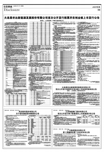 大连易世达新能源发展股份有限公司(以下简称“发行人”)首次公开发行1,500万股人民币普通股(A股)(以下简称“本次发行”)并将在创业板市场上市。本次发行将于2010年9月20日分别通过深圳证券交易所交易系统和网下发行电子化平台实施。发行人、保荐人(主承销商)特别提请投资者关注以下内容: