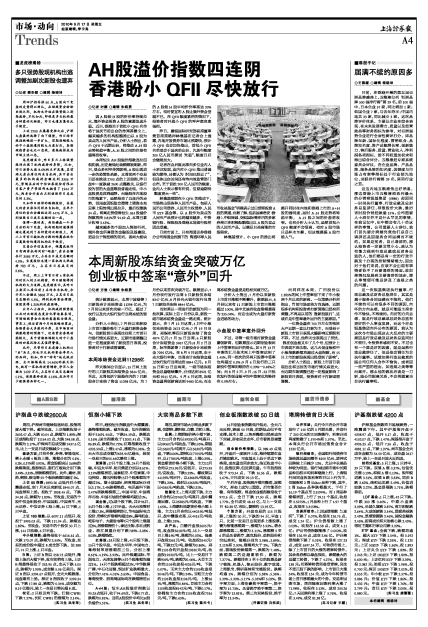 板块方面:只有外贸、券商、智能电网、稀土永磁4板块上涨,涨幅分别为0.1%、0.2%、0.37%和0.91%。黄金股板块以3.68%的跌幅垫底,旅游酒店、图们江板块分别下跌3.49%、3.35%,居跌幅榜前列。此外,建材、医药、钢铁、核电等59个板块跌幅均超过2%。