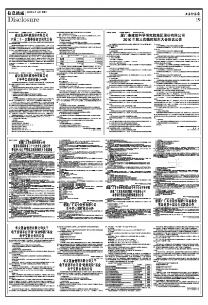 《厦门市建筑科学研究院集团股份有限公司关于召开2010年第三次临时股东大会的公告》在2010年8月28日《证券时报》、《中国证券报》、《上海证券报》、《证券日报》和巨潮资讯网上披露。