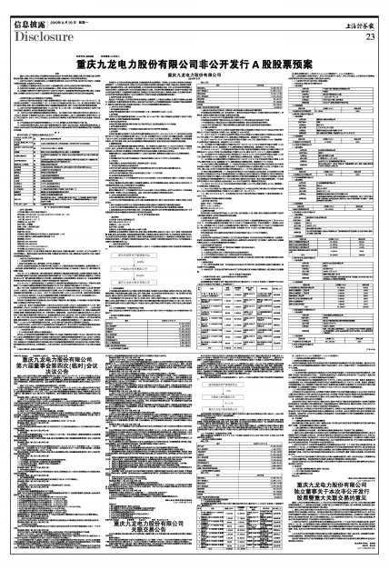 重庆九龙电力股份有限公司非公开发行A股股票预案