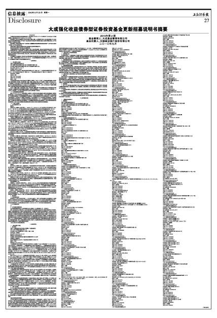 大成强化收益债券型证券投资基金更新招募说明书摘要