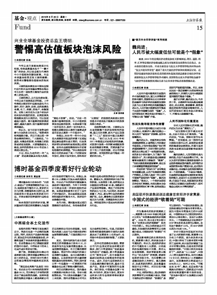 兴业全球基金投资总监王晓明:警惕高估值板块泡沫风险