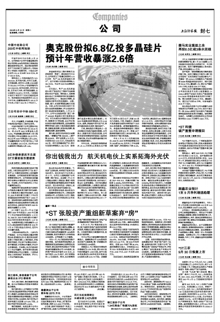 奥克股份拟6.8亿投多晶硅片预计年营收暴涨2.6倍