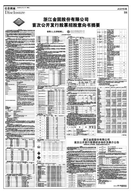 浙江金固股份有限公司首次公开发行股票招股意向书摘要