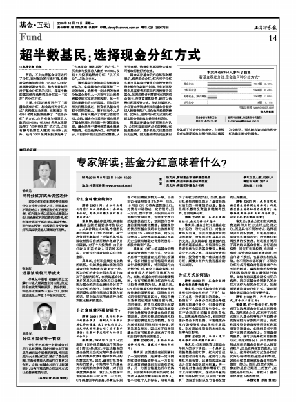 海通证券基金分析师吴先兴认为,分红和业绩没有必然的联系。在挑选基金时,更多的是关注基金的历史业绩,因为基金的历史业绩已经体现了过去分红的部分,但是投资者如果期望收益部分能早点落袋为安的话,那么就应该考虑这种分红次数比较多的基金。