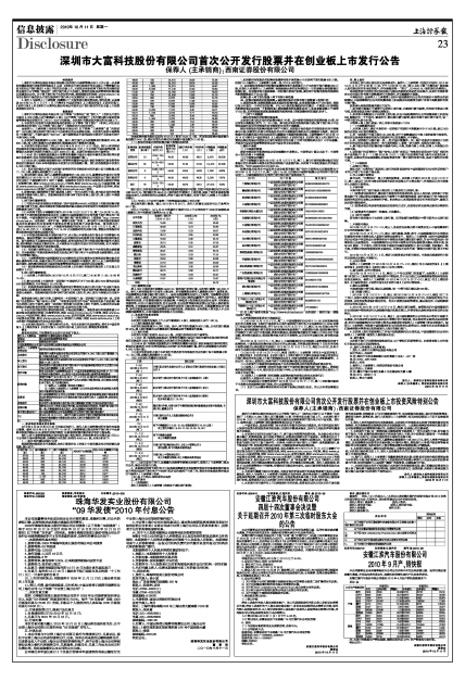 深圳市大富科技股份有限公司首次公开发行股票并在创业板上市发行公告