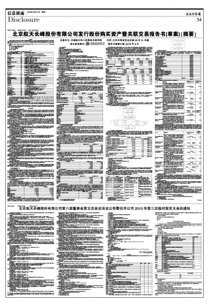 北京航天长峰股份有限公司第八届董事会第五次会议决议公告暨召开公司2010年第三次临时股东大会的通知