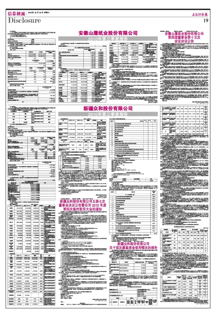 安徽山鹰纸业股份有限公司2010年第三季度报告