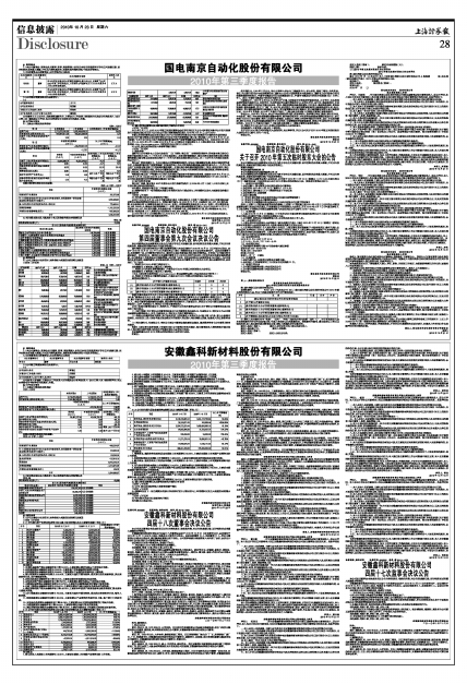 安徽鑫科新材料股份有限公司2010年第三季度报告