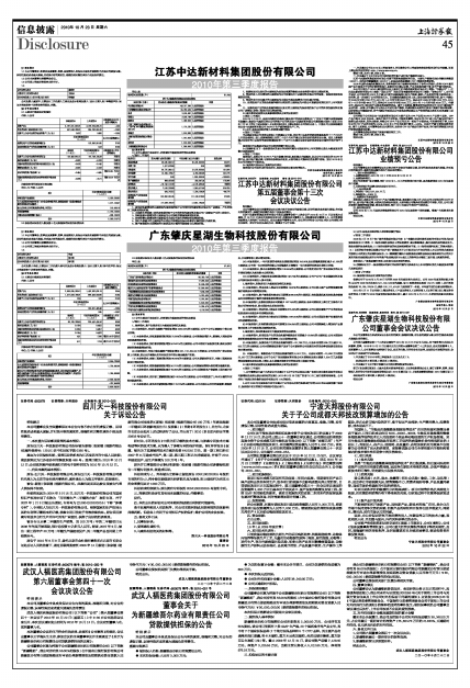 江苏中达新材料集团股份有限公司2010年第三季度报告