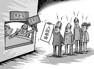 中国60岁及以上的老年人截至去年底已达1.67亿,选择到养老机构去养老的人也越来越多。而据测算,我国养老机构床位至少缺300万张。北京一位市民为了让老人进一家较好的养老院,整整排了两年队。漫画 刘道伟