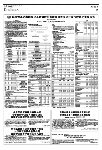 珠海恒基达鑫国际化工仓储股份有限公司首次公开发行股票上市公告书