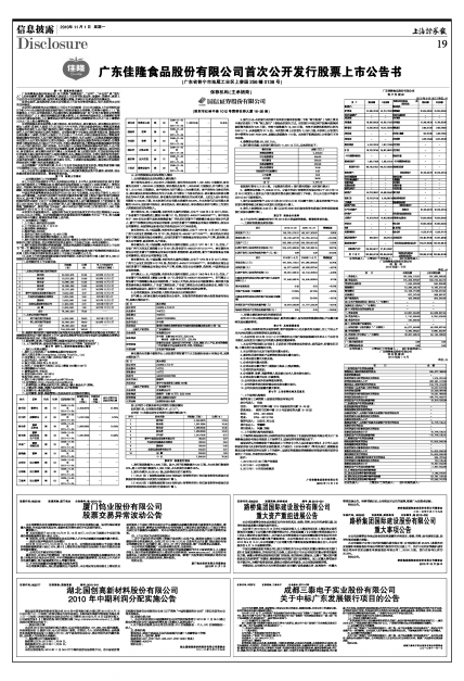 广东佳隆食品股份有限公司首次公开发行股票上市公告书