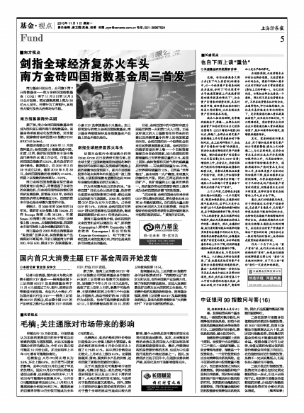 剑指全球经济复苏火车头 南方金砖四国指数基金周三首发
