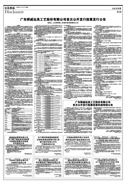 广东骅威玩具工艺股份有限公司首次公开发行股票发行公告