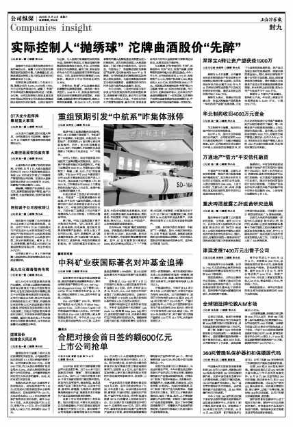重组预期引发“中航系”昨集体涨停